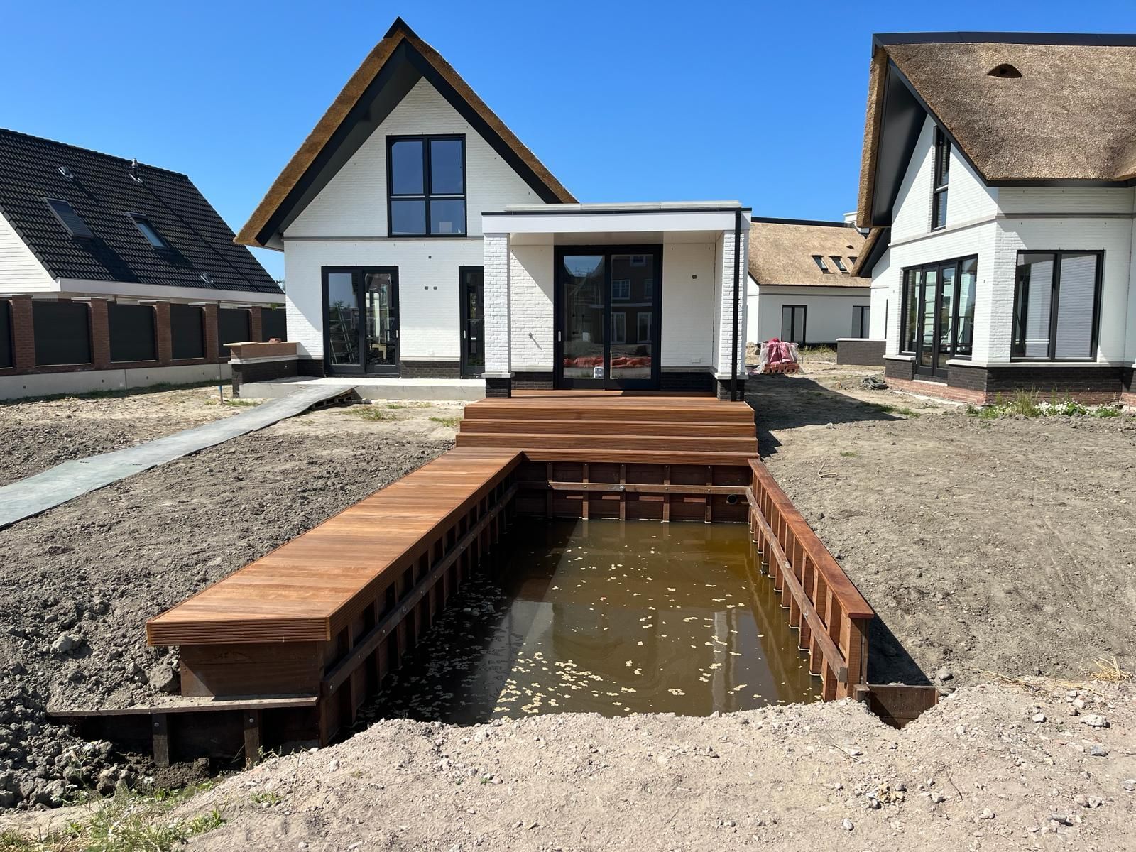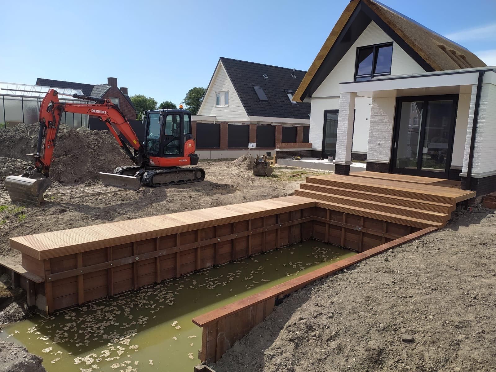 In opdracht van Bouwbedrijf van Leent hebben wij voor het project Rietpoel in 's-Gravenzande voor het totaalproject mogen zorgen. Van uitgraven van de funderingen en kelders tot het maken van de vlonders, invaarhavens en damwanden. Ook het straatwerk aan de voorzijde van het huis hebben wij mogen aanleggen.